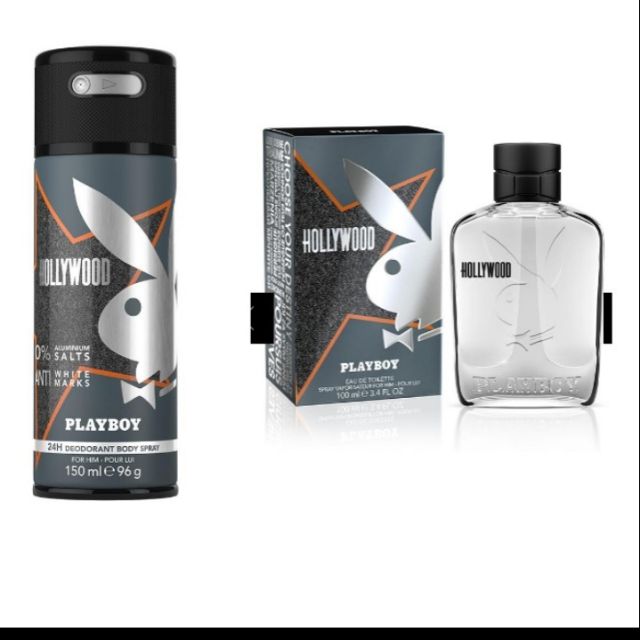 Playboy Hollywood All Over Body Spray 4 oz. Hollywood by Playboy EDT SPRAY 34 oz 100 ml For Men NEW IN BOX Made In Spain. PLAYBOY HOLLYWOOD by Playboy for MEN BODY SPRAY 5 OZ Launched by the design house of Playboy in 2008 PLAYBOY HOLLYWOOD by Playboy possesses a blend of Rosewood Thyme Mandarin Musk Elemi Lavender Sandalwood Cedar Wood Vetiver Amber Vanilla Bergamot Jasmine.