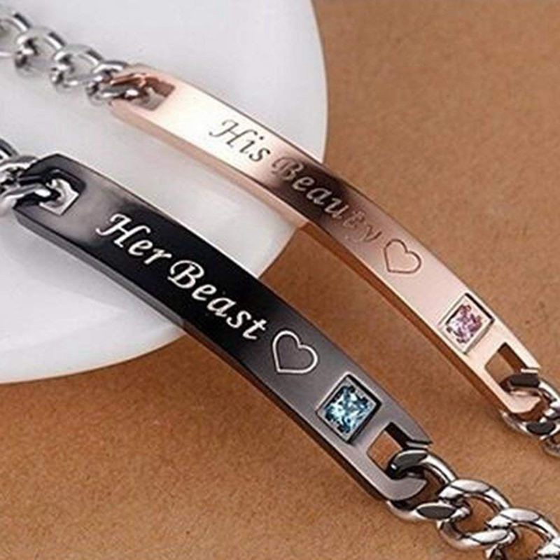 With this His Beauty Her Beast Couples Bracelets you two can wear complementing bracelets to remind each other of the other person knowing theyre wearing. This bracelet is the result of your love. Engravable Belt Bracelets Set For Couples In Titanium.