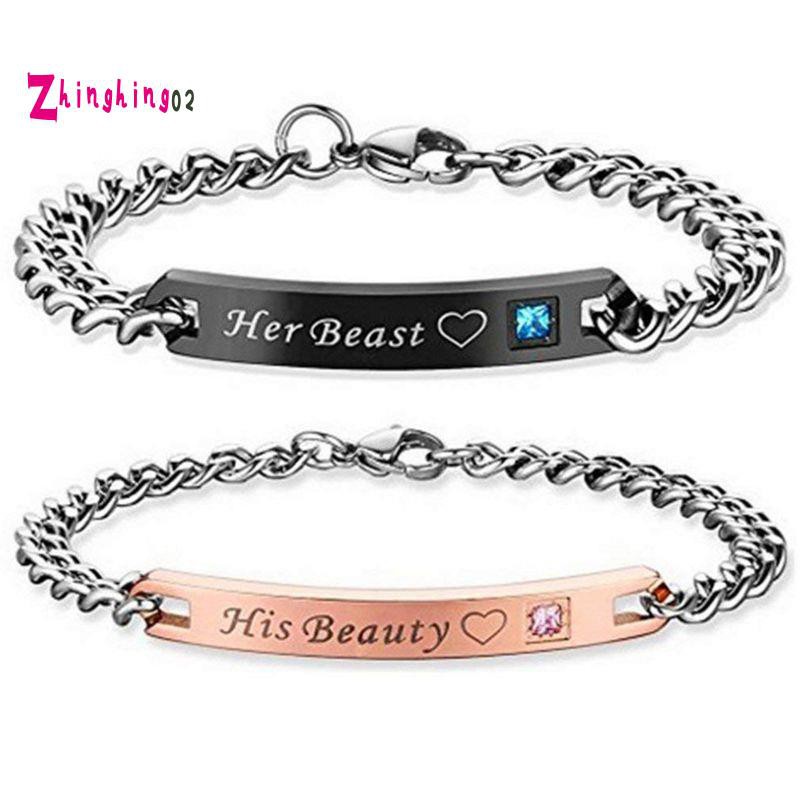 Set of 2 Couples Bracelets Personalized His Beauty Her Beast Bracelets Matching Set Bracelets Customized Boyfriend Husband Couple Gift banadesigns. His Beauty and Her Beast Silver Couple Bracelets 2495 3995. At couple matching we offer you the ideal relationship bracelets for your girlfriend or boyfriend. Couple Sets - 3495 USD Her. Every Set is made with love has engraved in it Her Beast His Beauty to reflect the deep loyalty bound. Wear these iconic timeless bracelets. Theyre inexpensive and a great gift id. Beige Reiki Set Necklace Bracelet Ring Earrings 6 Colors. Once upon a time a young man was cursed by a witch to forever walk the face of the Earth as an.