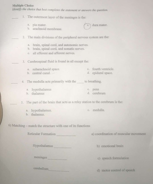 Multiple choice questions with answers on brain. MCQ quiz on Anatomy multiple choice questions and answers on Anatomy MCQ questions quiz on Anatomy objectives questions with answer test pdf for interview preparations freshers jobs and competitive exams. The answer to Question 1 cant be B either because then question 2 would state that its own answer is B when it would have to be C. This Neuroscience Test contains around 20 questions of multiple choice with 4 options.